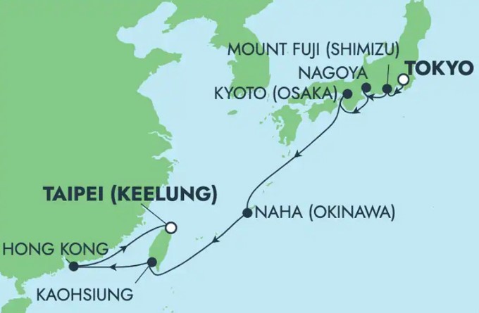 Ai ocazia sa vizitezi cele mai faimoase orase ale Japoniei – Tokyo, Kyoto si Osaka. Calatoreste si in Nagoya in timpul unui tur ghidat care te va duce la principalele atractii, inclusiv faimosul Sanctuar Atsuta. In Naha, afla despre cultura antica okinawana la Satul Popular Ryuku si vezi demonstratii de producere a ceramicii si tesuturi, inainte de a vizita alte atractii ale orasului. In timpul sederii tale de o noapte in Hong Kong, exploreaza minunile moderne ale orasului si minunile antice, pe masura ce templele si pietele stradale se intersecteaza cu cladirile ultra-moderne cu inaltimi impunatoare. Iar lar la sfarsit, vei putea vizita Taipei-ul, capitala fascinantei insule Taiwan.