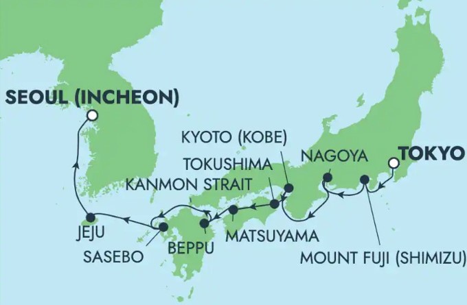 Lasa-te purtat de culturile, traditiile si peisajele spectaculoase ale Japoniei si Coreei de Sud. Experimenteaza tot ce are mai bun Nagoya in timpul unui tur ghidat la cele mai importante atractii, inclusiv la faimosul Sanctuar Atsuta. Calatoreste din Tokushima in Muntii Shikoku, pe ruta de pelerinaj Shikoku si bucura-te de privelisti uimitoare in timp ce urci pe versantii impaduriti cu o gondola pe cablu pentru a ajunge la Templul Tairyu–ji. Apoi, in timpul sederii tale de o noapte in Seul, bucura-te de ocazia de a explora capitala vibranta a Coreei de Sud, de la cele cinci palate grandioase si pietele aglomerate pana la muzee, arhitectura moderna, bucatarie delicioasa si multe altele.